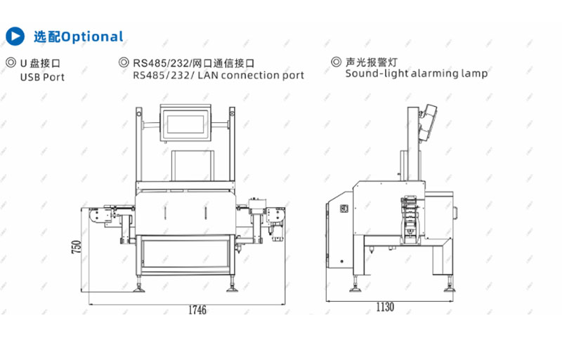 13.數(shù)據(jù)外部通訊接口,可連接生產(chǎn)線中其他設(shè)備(如打標(biāo)機、噴碼機等),并外設(shè)接口,實現(xiàn)數(shù)據(jù)導(dǎo)出和上傳!